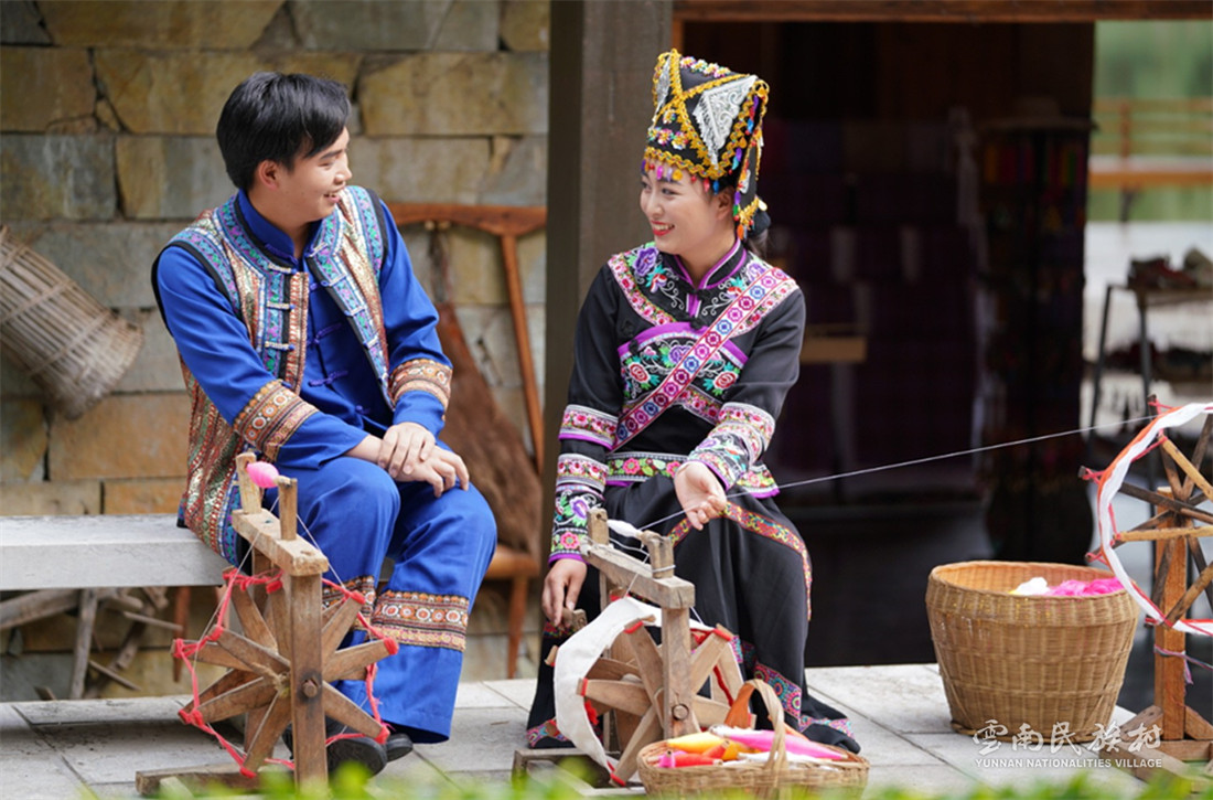 彝族在云南境內(nèi)約471萬人,是省內(nèi)人口最多、分布最廣的少數(shù)民族,主要聚居在金沙江、元江流域和哀牢山、無量山腹地。彝族是一個能歌善舞的民族,民間打歌、跳樂之風(fēng)盛行,大三弦、跌腳舞久負(fù)盛名?;鸢压?jié)是彝族最具特色的民族節(jié)日。彝族村占地50余畝,三虎浮雕墻與虎頭內(nèi)祖師形象表現(xiàn)了彝族虎鷹文化。太陽歷廣場圖騰柱上有太陽、虎、火和八卦圖形象,周圍環(huán)繞著10個朝向不同的月球造型,外圓周有12生肖石雕。依山而建的“...